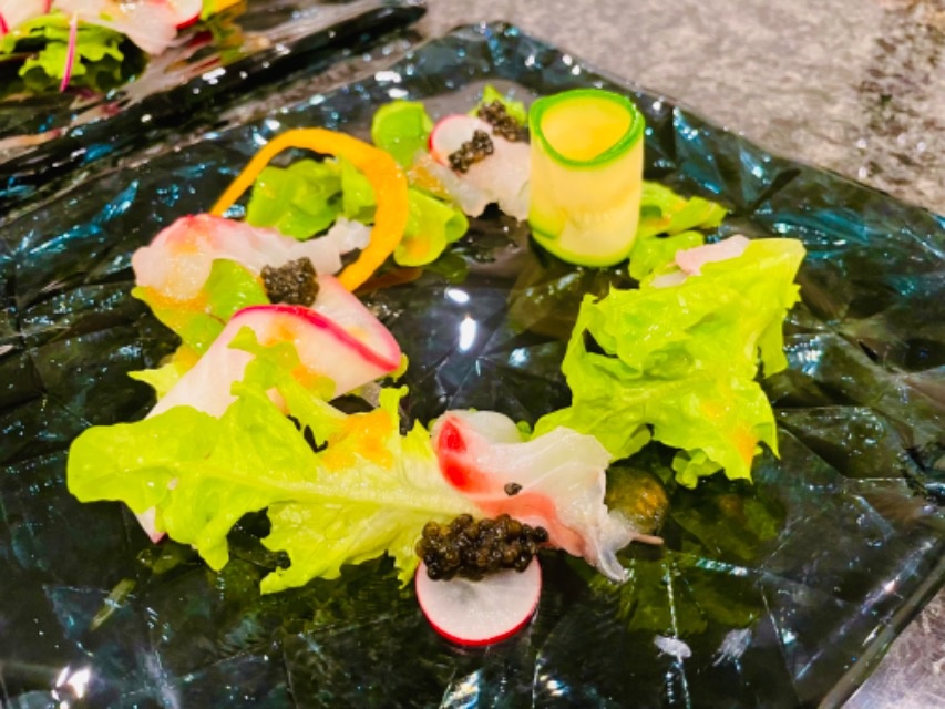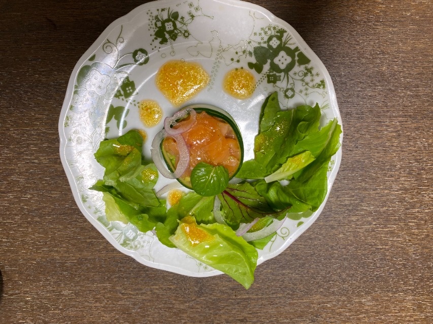 鮮魚のカルパッチョ フルーツサラダ仕立て