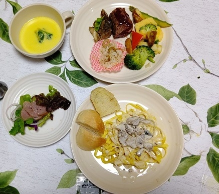 毎年この時期に妻と子供の誕生祝いで利用してまして、今回はイタリアンのコースでお願いしました。 子供が2人いて食べ進むのが遅めになりがちですが、頃合いで次の料理を出して頂いたり、リクエストさせて頂いたケーキにロウソクつけて頂いたり、細かいお気遣いありがとうございました。 料理はどれも良かったですが、特にフォカッチャと魚介のパスタと鮮魚のソテーがとても良い味でした。子供はバンとパスタがお気に入りだったようです。 コロナ禍でかつ子供がいると外食では何かと気を使いますので、自宅でゆったり外食さながらの食事ができとても良い時間帯を過ごせました。ありがとうございました。