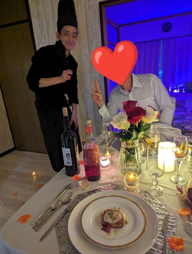 結婚記念日に利用させていただきました。出張シェフの利用は初めてでしたが、テーブルセッティングでお花まで生けていただき、自宅の調理器具で作っていただいたとは思えない本格的なお料理の数々で、味・サービス共に大満足でした!2歳の子供がおり、かつ第二子妊娠中で外出が難しかったので、とっても助かりました。また必ず利用したいです。