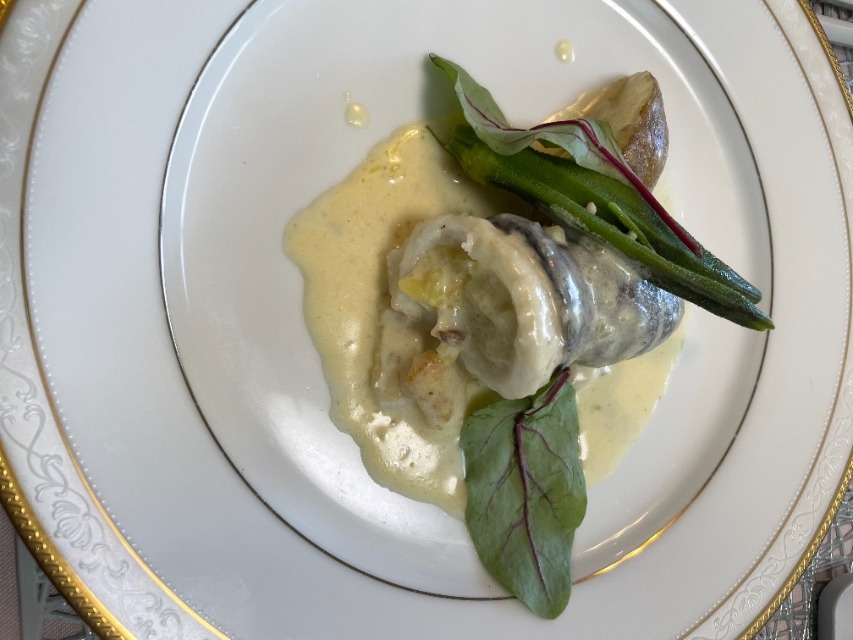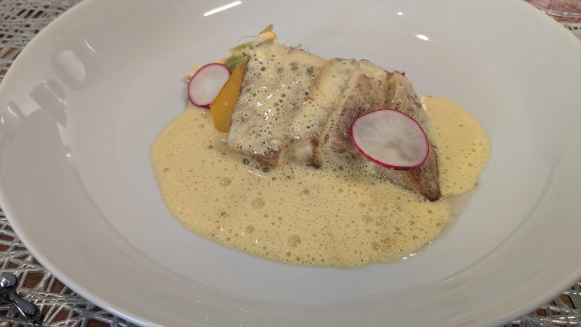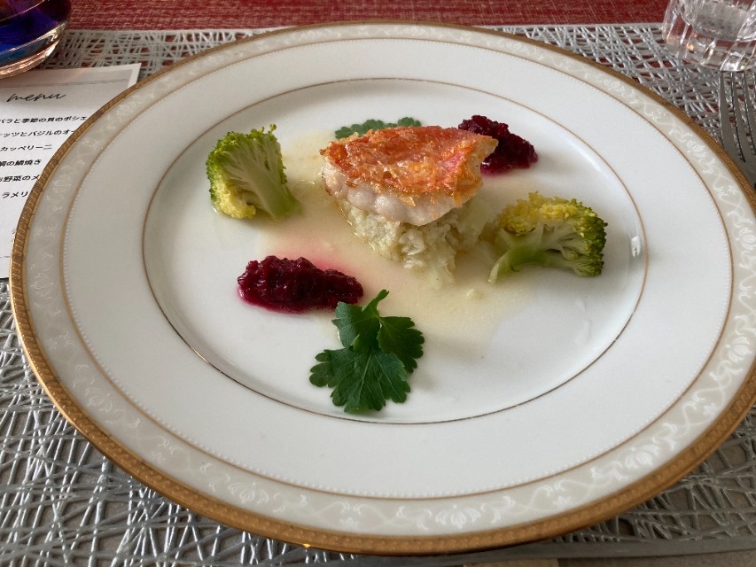 季節鮮魚のロティ、横須賀野菜のピューレ