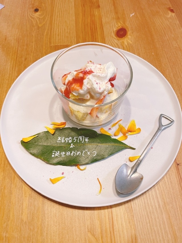 夫婦の結婚記念日で利用させて頂きました。 事前の打ち合わせもご丁寧で、当日もメニューになかった前菜を出して頂いたり、子供用のプレートもボリュームたっぷりで凄くよかったです。 苦味のある野菜が少し苦手だったのですが、とても美味しくびっくりしました。どの料理も食べ終わるのがさみしくなるくらい美味しかったです。 おかげで素敵な結婚記念日を送ることが出来ました。本当にありがとうございました。