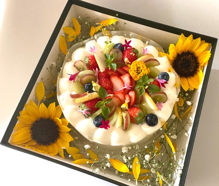 スイーツも得意とするKaeのオーダーメイドケーキ。 ウェディングや記念日のパーティーなどにご利用ください。特別な日の素敵な思い出になりますよう心を込めて丁寧にお作りいたします。 ※35000円(税抜)10名様程度〜/サイズ調整可能です。 ※ご要望や材料により料金は異なります。 ※詳しくはお気軽にお問い合わせください。